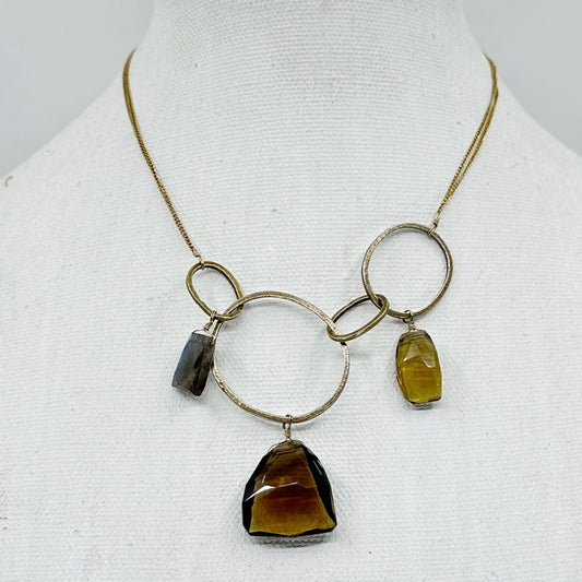 Alexis Bittar gold tone smoky quartz & labradorite bead necklace - GM1679