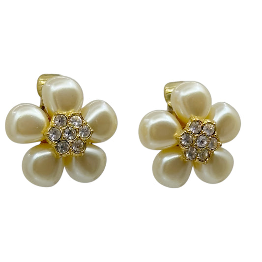 Avon Gold tone pearl & rhinestone clip on earrings