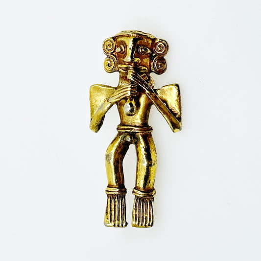Alva Museum Reproduction Gold tone Flute Player Fertility Brooch