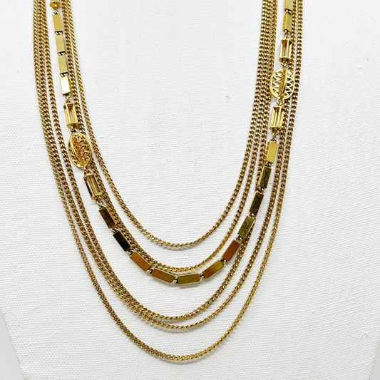 Vintage Monet Gold tone swirl bead multi strand necklace - GM1026