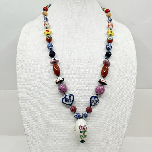 Vintage Chinese Hand painted porcelain bead necklace - GM1067