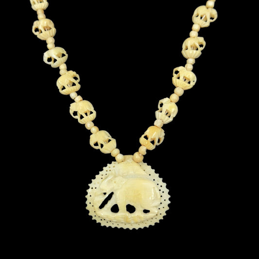 Vintage bone carved elephant bead necklace - GM1094