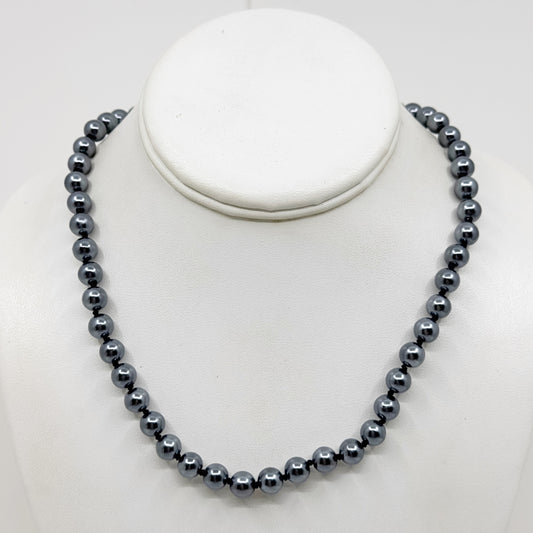 Vintage 8mm faux black pearl necklace - GM1520