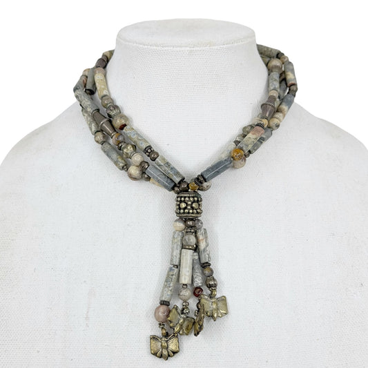 Vintage bohemian silver tone & jasper bead choker necklace
