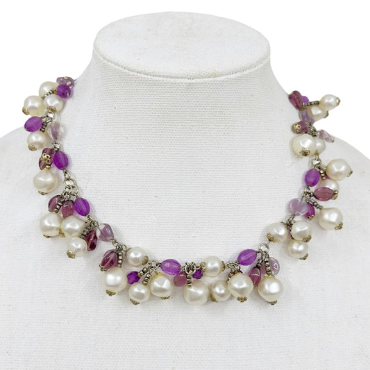 Silver pearl & amethyst bead necklace