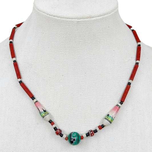 vintage Southwest hand painted bead necklace