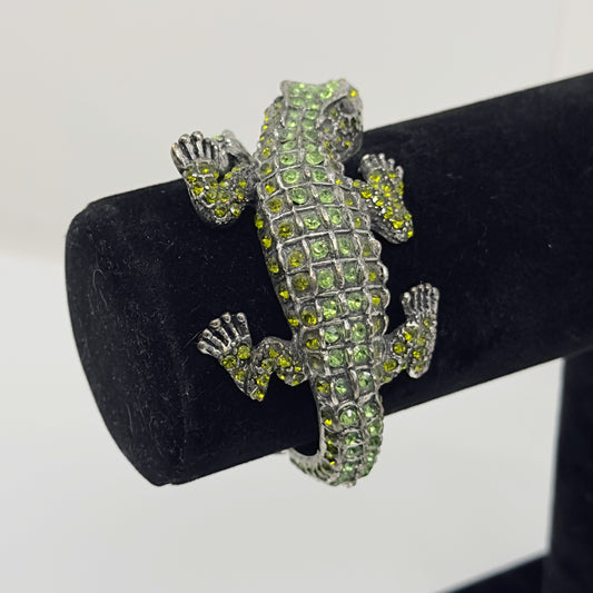 silver tone Rhinestone alligator clamp bracelet