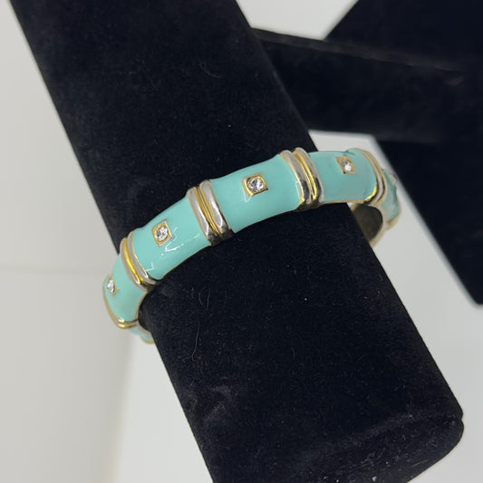turquoise enamel rhinestone hinged bangle bracelet