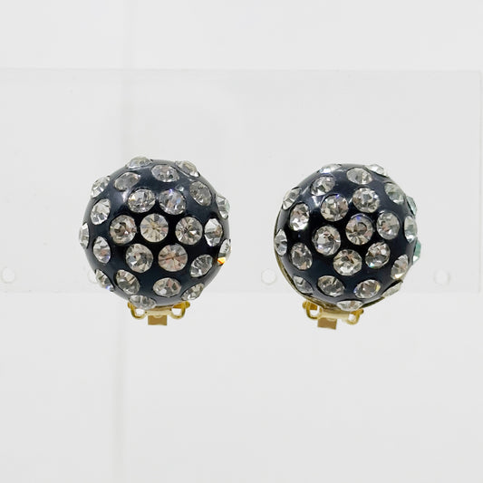 Vintage Gold tone rhinestone dome clip on earrings