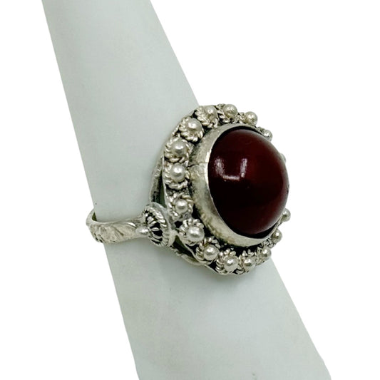Vintage 925 sterling silver carnelian Cannetille Etruscan ring - GM830
