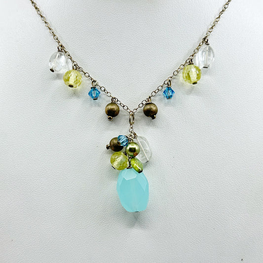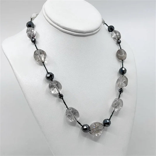 sterling silver rutilated quartz & crystal bead necklace - GM1007