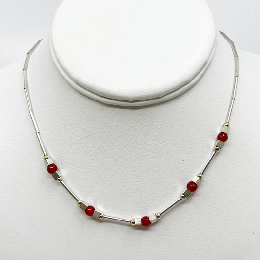 sterling silver & gold filled carnelian bead necklace - GM1022