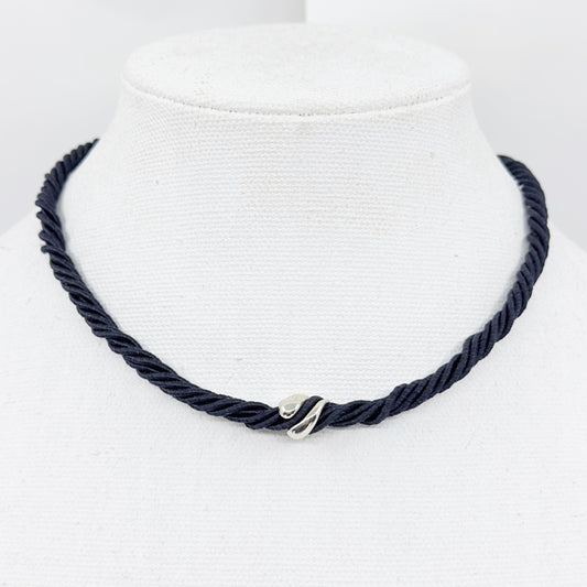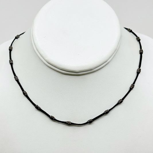 Vintage Sterling silver bead cord necklace - GM1029