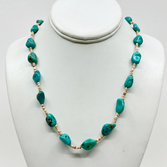 Navajo sterling silver turquoise & heishi shell bead necklace - GM1064