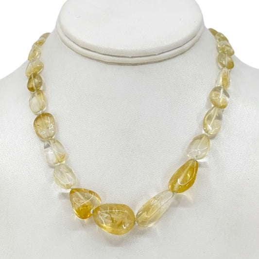 Hand Made Sterling Silver graduated citrine bead necklace - GM1124