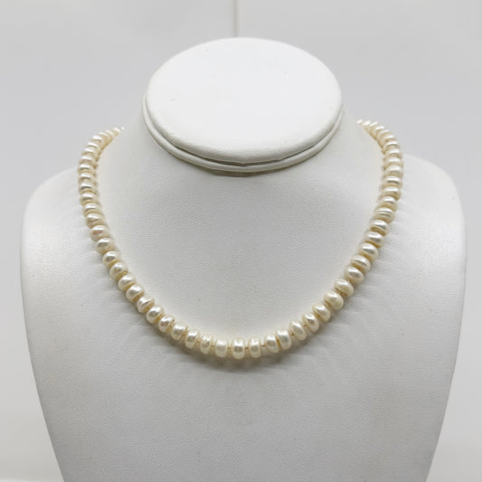 sterling silver 7mm button freshwater pearl necklace - GM1133