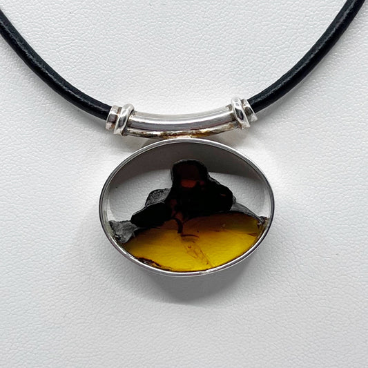 sterling silver baltic amber leather necklace - GM819