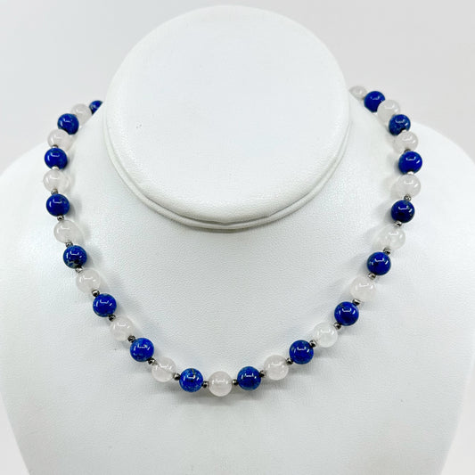 Sterling silver quartz & lapis lazuli bead necklace - GM824