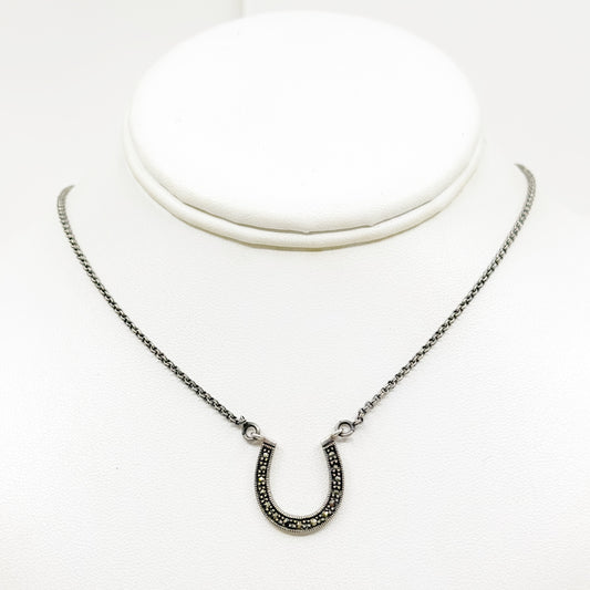 sterling silver marcasite horseshoe pendant necklace - GM856