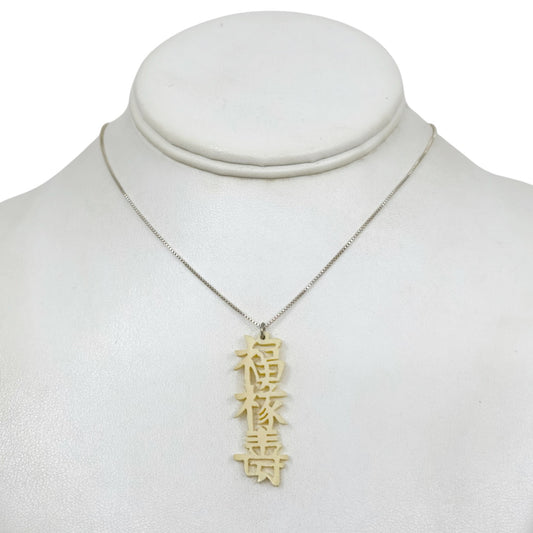 Vintage Sterling silver chinese character bone Pendant necklace - GM866