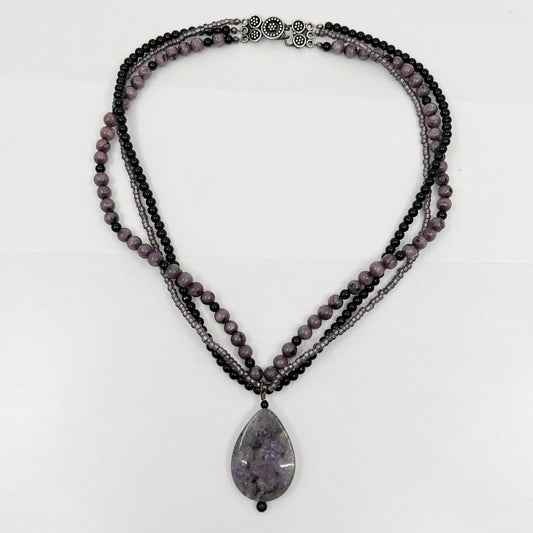 Sterling silver amethyst & onyx bead necklace - GM882