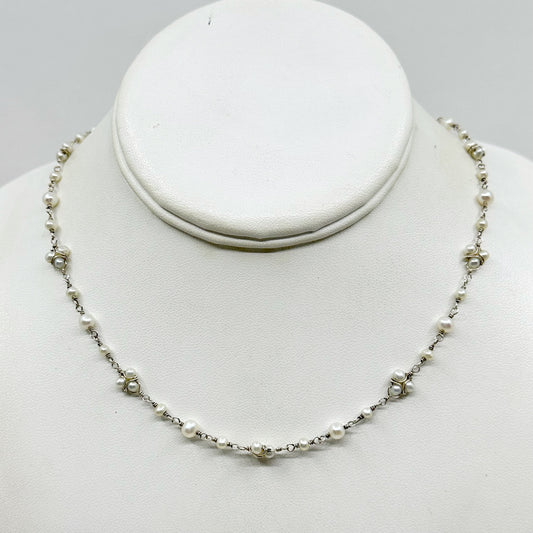 Hand Made sterling silver Silver freshwater pearl bead necklace - GM904