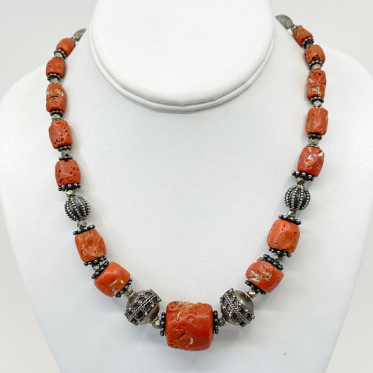 Tribal Sterling silver natural Mediterranean coral necklace - GM949