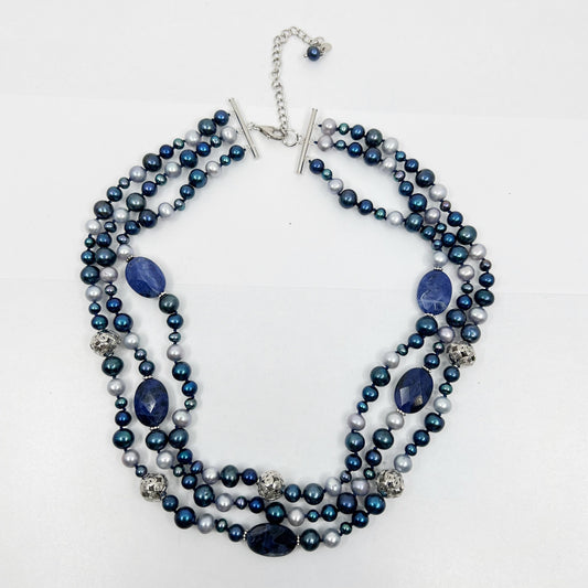 sterling silver pearl & sodalite bead necklace - GM956