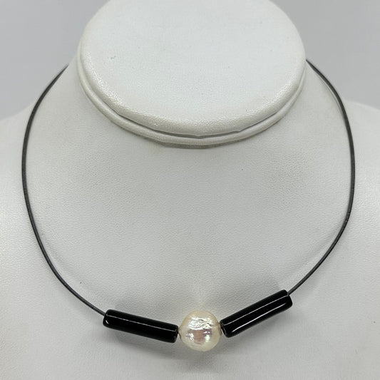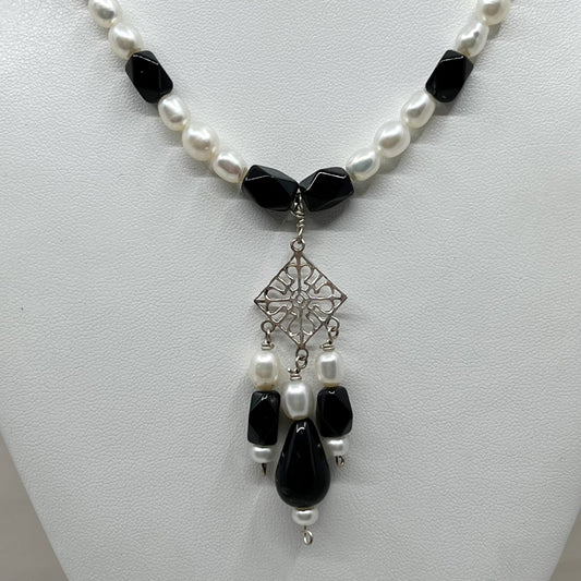 sterling silver pearl & onyx necklace - GM976