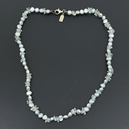 Peyote Bird sterling silver pearl & quartz bead necklace - GM987