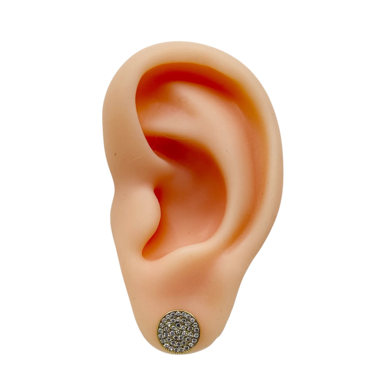 Single Gold Vermeil Sterling silver cubic zirconia disk stud earrings - GM628