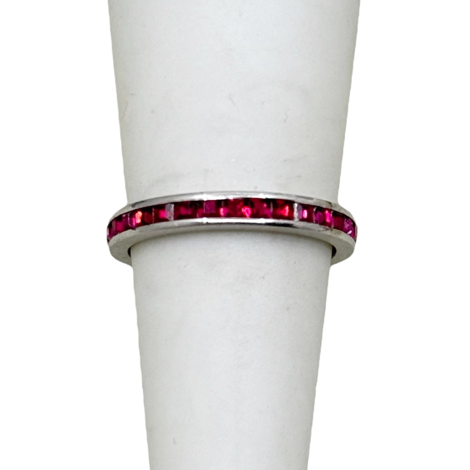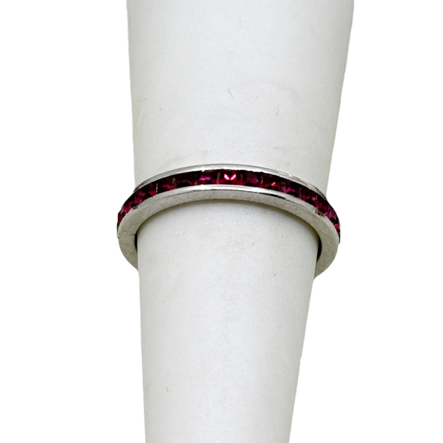 vintage sterling silver ruby rhinestone band ring - GM315