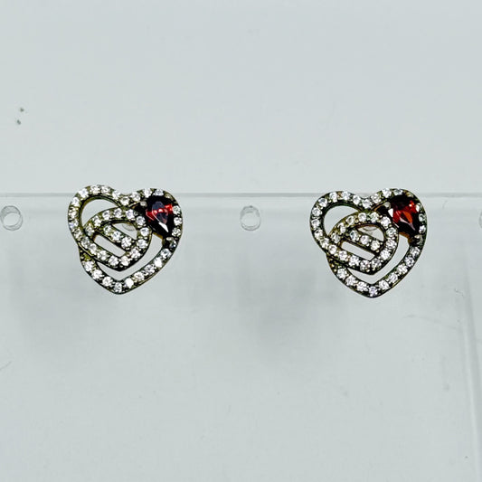 Gold over sterling silver garnet & cubic zirconia heart stud earrings - GM146