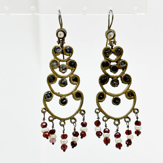 French sterling silver & bronze pearl Iolite Chandelier earrings - GM170