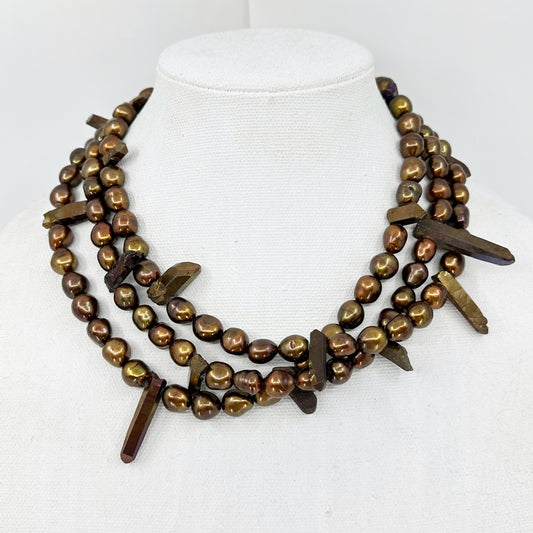 Gold Filled freshwater pearl & titanium coated quartz bead necklace - GM693