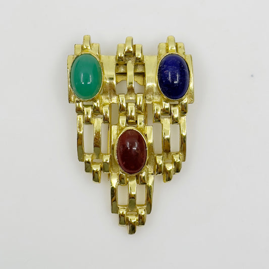 Vintage Gold tone glass cabochon fur clip brooch - GM1778