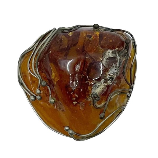 Mid Century Sterling silver baltic amber brooch - GM545