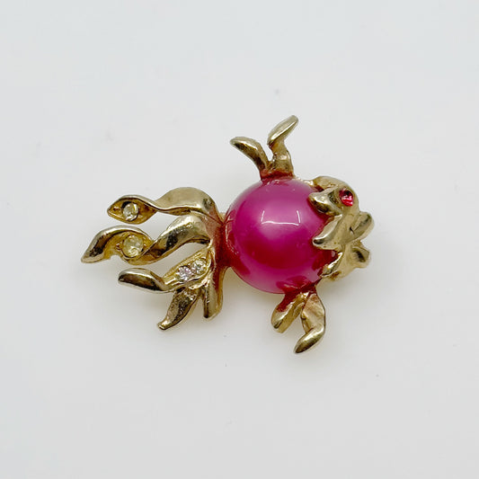 Vintage gold tone rhinestone jelly belly lucite angel fish brooch - GM1789