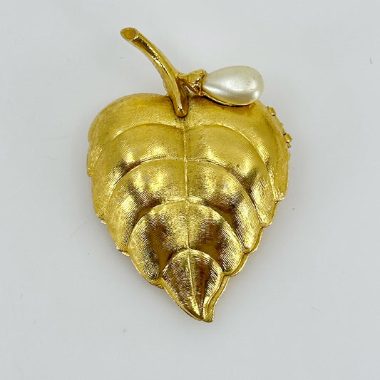 Vintage Avon Gold tone pearl solid perfume leaf brooch
