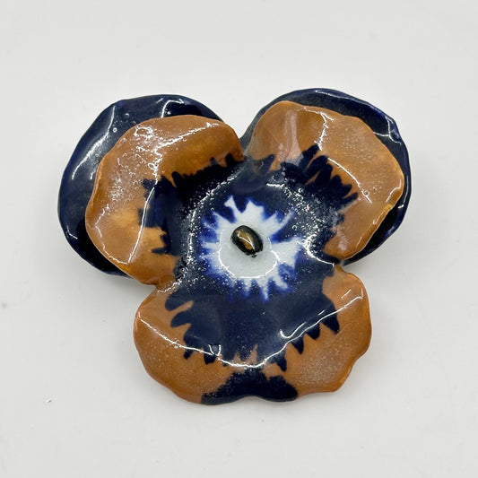 Vintage hand made pottery pansy flower brooch