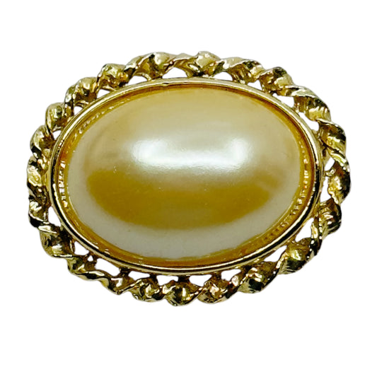 Vintage Gold Tone Mabe pearl brooch