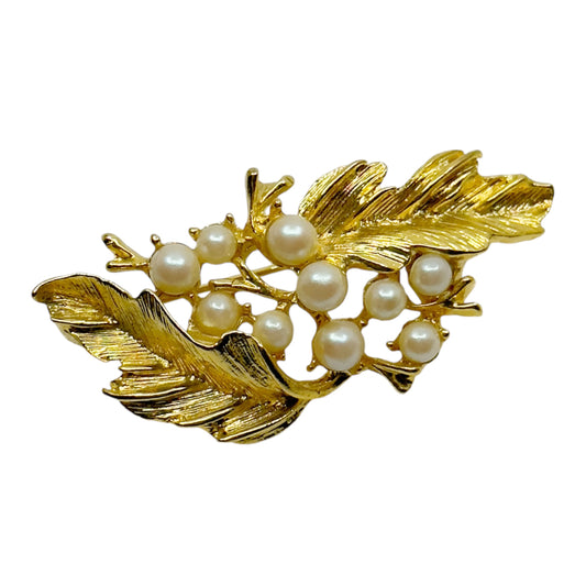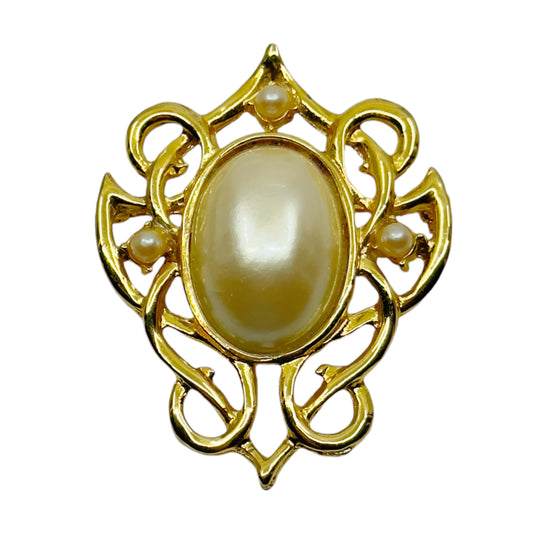 Vintage Gold Tone pearl brooch