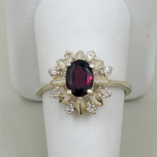 Sterling silver garnet & cubic zirconia ring - GM1167