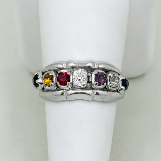 Vintage sterling silver cubic zirconia mother bamboo ring - GM188