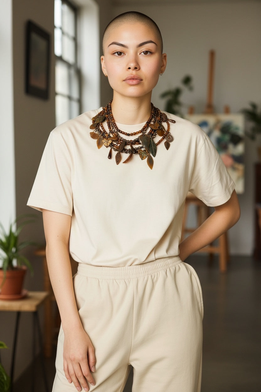 Note: the necklace has some green patina on the Cooper