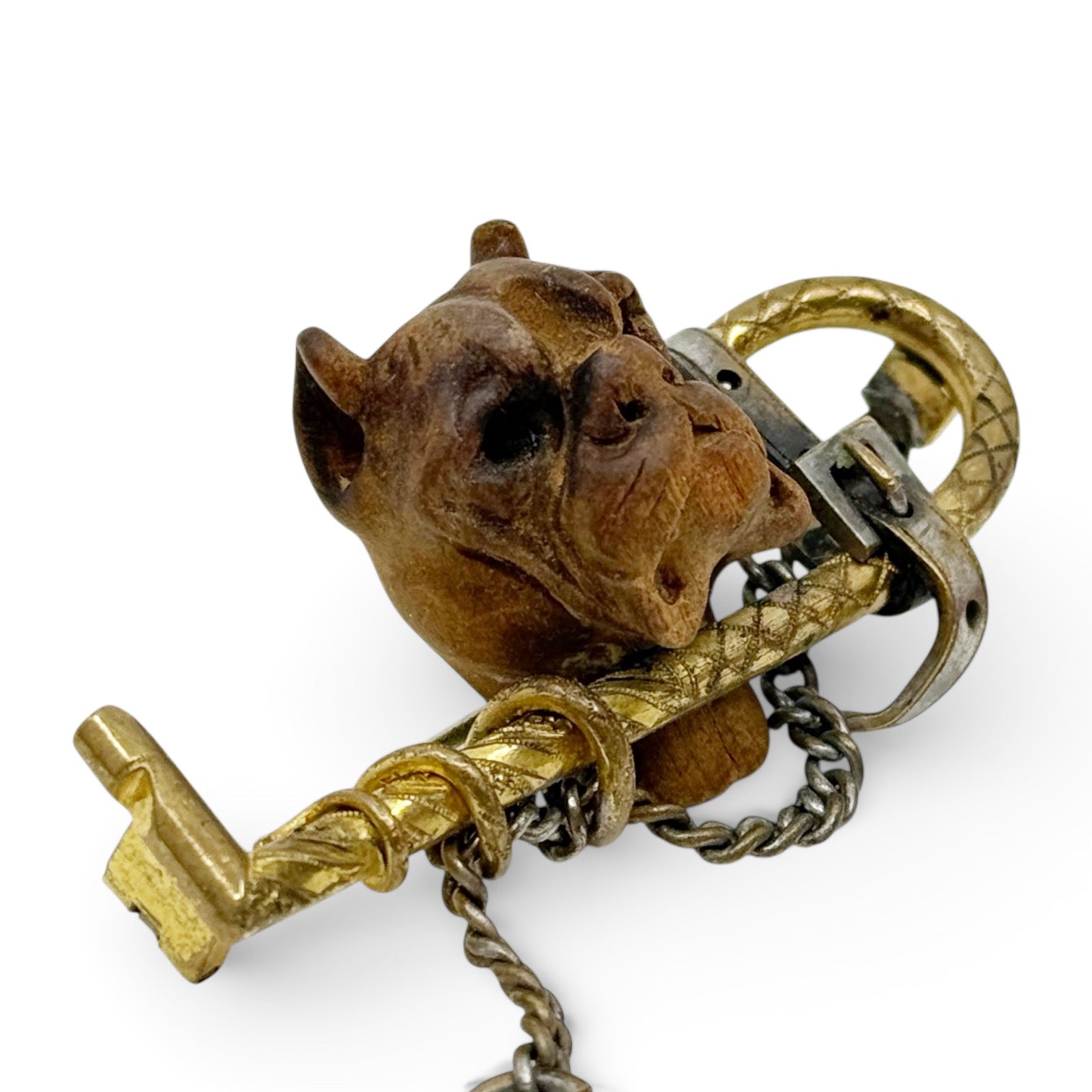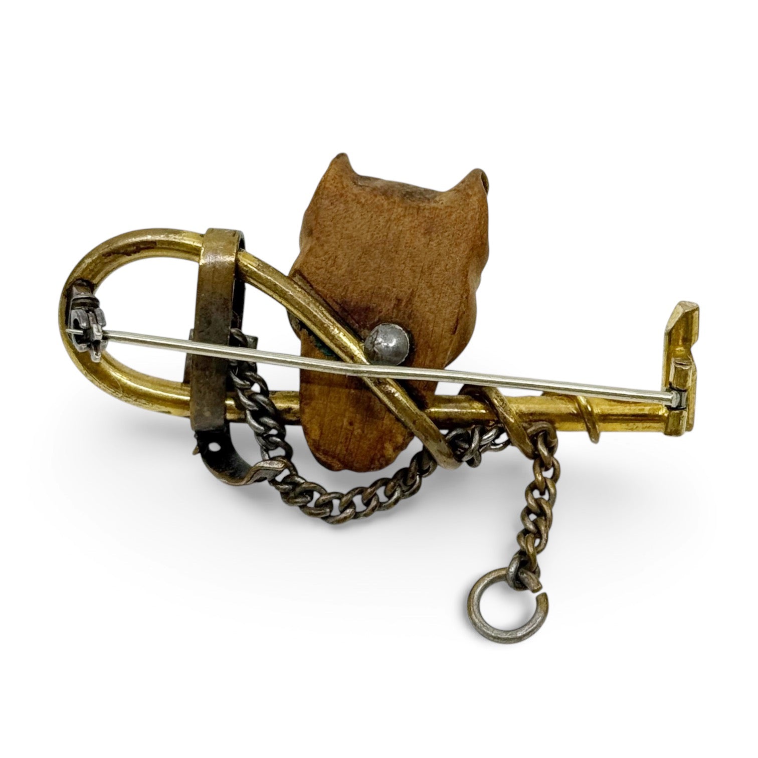 victorian Gold filled carved wood bulldog terrier dog equestrian brooch - GM1582