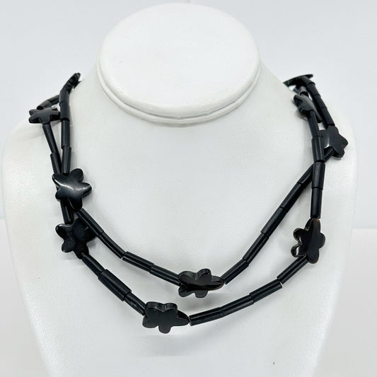 carved horn flowers & wood bead necklace - GM1870
