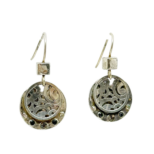Contemporary 18k gold & sterling silver drop earrings - GM96