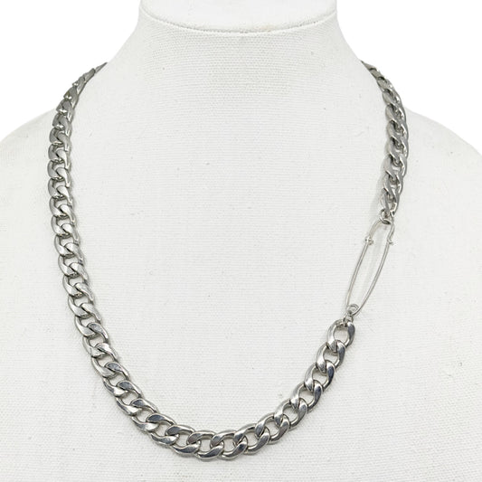 Fashion Silver tone safety pin link chain necklace - GM1603