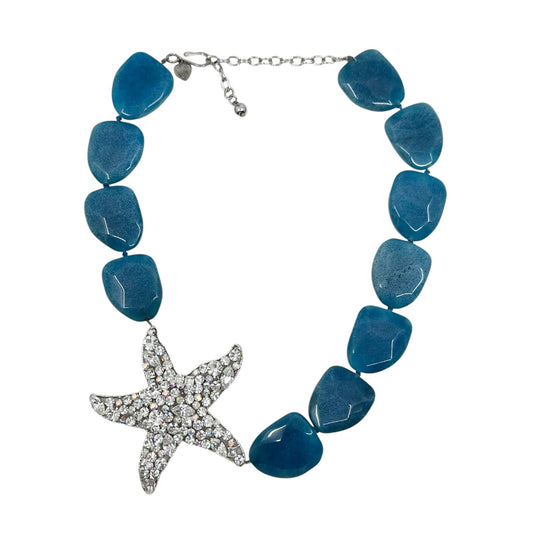 Jojo Silver tone glass bead rhinestone sea star necklace - GM1604